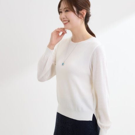 袖に繊細な地柄を施した上品なハイゲージニットプルオーバー。