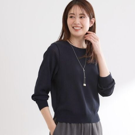 袖に繊細な地柄を施した上品なハイゲージニットプルオーバー。