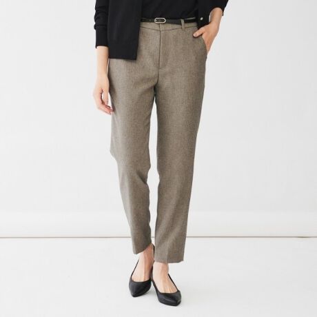 通常のポリエステルとカチオンという特殊なポリエステルを使用して染色する事で、杢調のミックス感のあるツィーディーな表情を出しているのが特徴です。