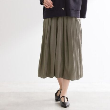 ウエストはゴム仕様で着回しやすいスカート見えパンツは、穿き心地良く幅広いアイテムに合わせやすいので毎日穿きたくなるボトムになっています。
