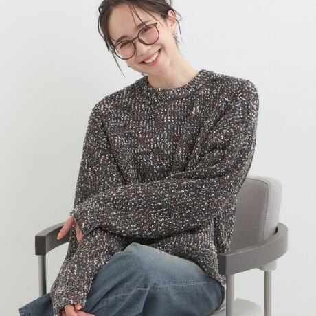ぽこぽことしたかわいい糸を織り交ぜた前後2wayのニットです。