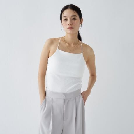 ・シアートップスと合わせて、背中のデザインを活かしたスタイリングもおすすめ。