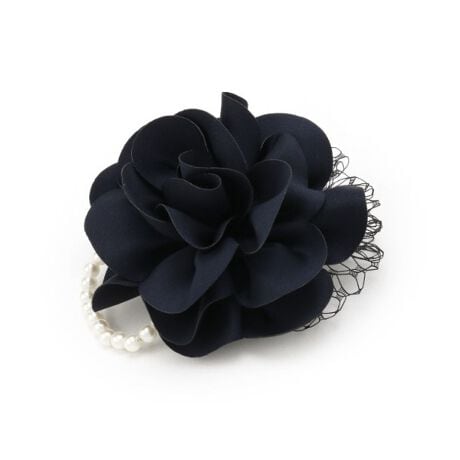 花の片側に配したパール調ビーズの飾りがさりげなく華やかさを添え、フォーマルな場面では華やかなアクセントになってくれます。