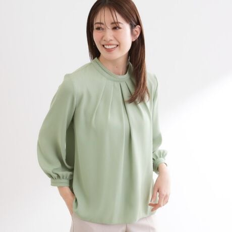 スタンド衿が印象的なディテールにこだわったデザインブラウス。