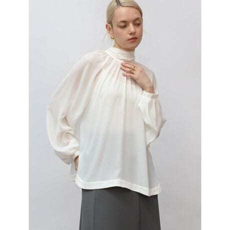 ボウタイの結び方によって表情が変わり、コーディネートに華やぎを添えてくれるブラウス。襟周りや袖口の立体感のあるギャザーが柔らかな印象を与えつつ、生地の落ち感が甘くなりすぎない上品さを演出します。きちんと感のあるデザインで着回し力抜群。ジャケットなど合わせるアイテムによって、フォーマルやセレモニー用途にも活躍してくれます。