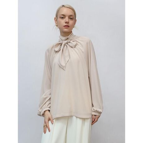 ボウタイの結び方によって表情が変わり、コーディネートに華やぎを添えてくれるブラウス。襟周りや袖口の立体感のあるギャザーが柔らかな印象を与えつつ、生地の落ち感が甘くなりすぎない上品さを演出します。きちんと感のあるデザインで着回し力抜群。ジャケットなど合わせるアイテムによって、フォーマルやセレモニー用途にも活躍してくれます。