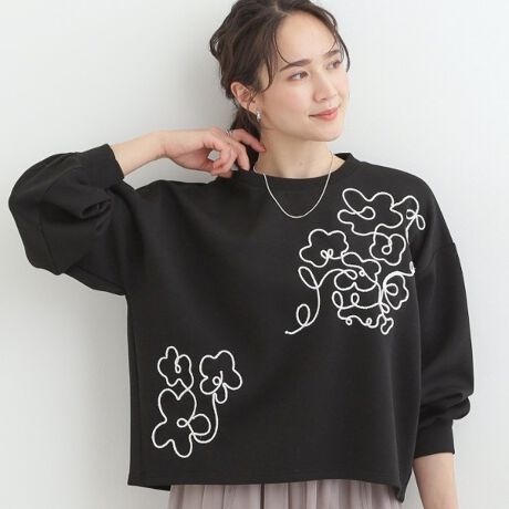 フロントと肩にあしらわれた立体的な花柄刺繍が、シンプルな装いに上品な華やかさをプラスしてくれます。