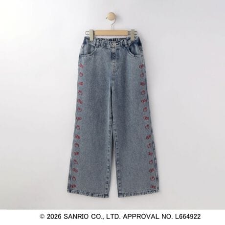 大人気ハローキティのモチーフを刺繍したデニムパンツです。