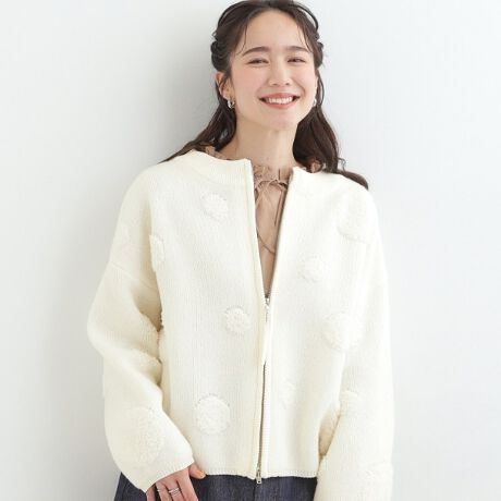 前を開けてカーディガンとして羽織るのはもちろん、ファスナーを閉じてトップス風にも着ていただけます。