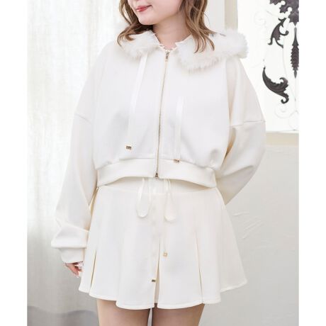 1062010106 2wayフェイクファーラメパーカーとのセットアップでの着用がおすすめ。