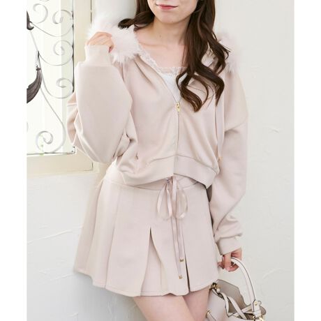1062010106 2wayフェイクファーラメパーカーとのセットアップでの着用がおすすめ。