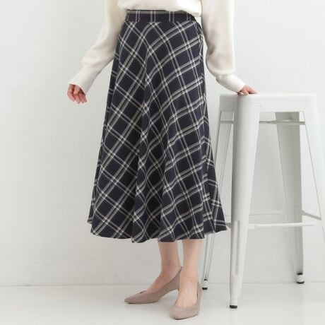 チェック柄の中にさりげなくモールラインを織り込んだ、表情豊かなフレアスカート。