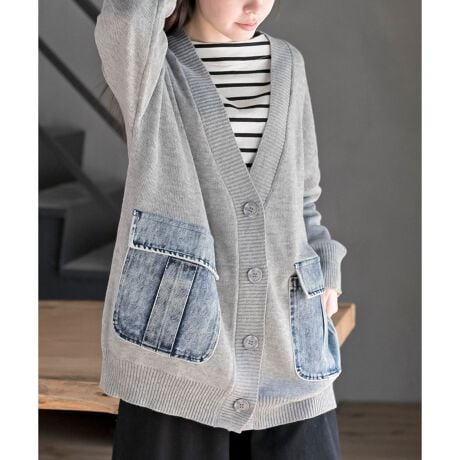 デニムポケットがアクセントになったリラックスカーデ