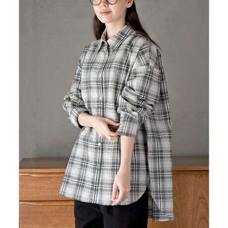シャツとして1枚で、前を開けてさっと羽織って、カットソーにビスチェを重ねて、など着回しの効く楽しいアイテム。