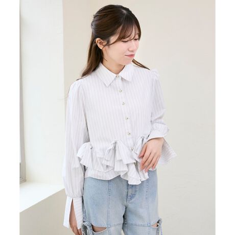 裾のフリル&リボンデザインが目を惹くブラウスが登場!