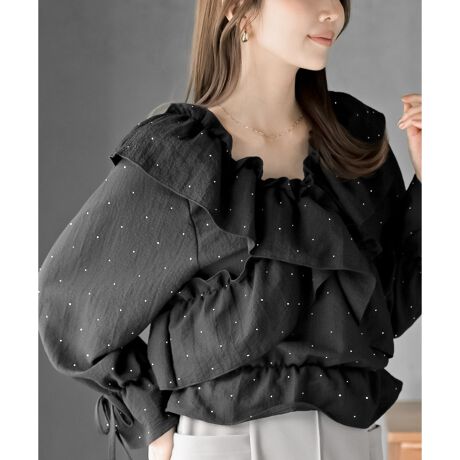 ホットフィックスクロスフリルペプラムブラウス