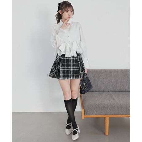 クラシカルなチェック柄を、程よく広がる台形シルエットで仕上げたミニスカパン。