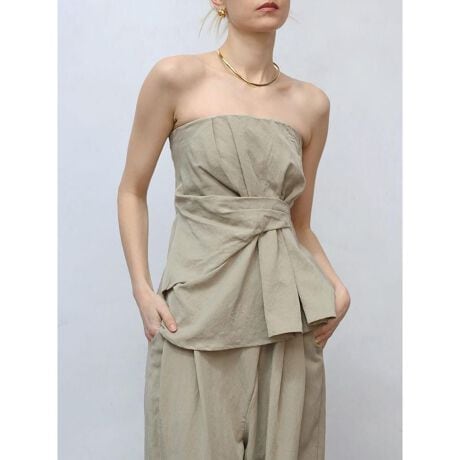 レイヤードスタイルやプラスワンアイテムに取り入れるだけでスタイリングをアップデートしてくれるデザインビスチェ。フロントの立体的なアシメデザインが、スタイリングに奥行きと個性をプラス。背中はシャーリングデザインを施し、身体にしっかりフィット。ジャケットなど羽織りアイテムのインナーに単品使いから、シャツやカットソーに重ねてレイヤードをお楽しみいただくのもおすすめです。