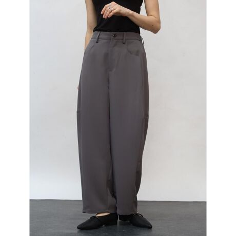 さりげないカーブラインがトレンド感のあるパンツ。さらっとした素材にゆとりのあるシルエットが、リラクシーな着用感ながらもきちんと見えも叶えてくれる優秀ボトム。飽きの来ないシンプルなデザインで、シーンやテイストを選ばない幅広い着こなしに活躍してくれます。