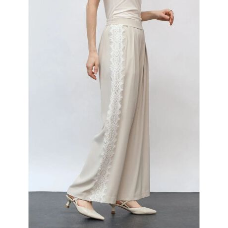 女性らしい上品なアクセントが魅力の、レースをドッキングさせたブラウス。ウエストはゴム仕様に、ワイドシルエットがリラクシーな着心地を叶えつつ、繊細なレースをサイドにドッキングさせ、自然なスタイルアップを叶えます。デイリー使いはもちろんのこと、セットアップでの着用やジャケットなど合わせるアイテム次第では、フォーマルやセレモニー用途にも活躍してくれます。