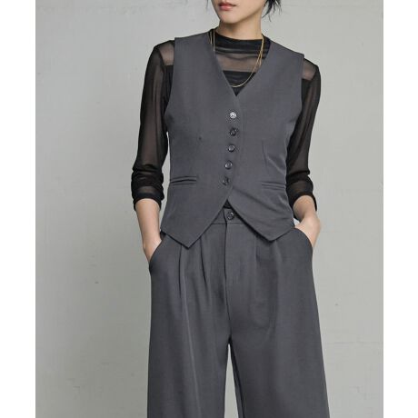 すっきりとしたVカラーが着こなしやすいジレは、きれいめながらも程よいシルエットがこなれた印象。
