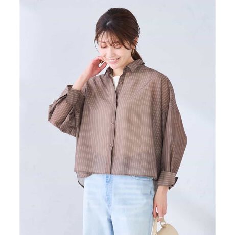 程よいシアー感が軽やかな、ドルマン風シルエットのショート丈シャツです。