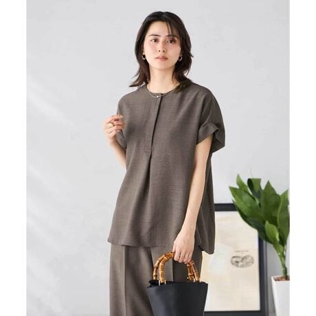 ◆シーズンムード高まる麻調素材のスキッパーブラウス◆