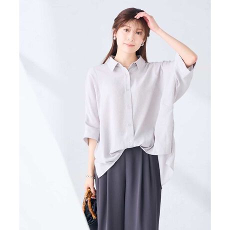 ゆったりとしたドルマンシルエットが、抜け感のある楊柳素材のブラウスです。