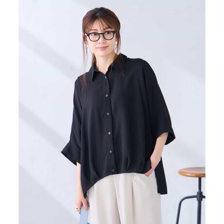 ゆったりとしたドルマンシルエットが、抜け感のある楊柳素材のブラウスです。