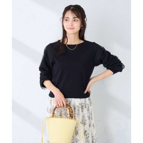 ◆袖のチュールが女性らしい着映えニット◆