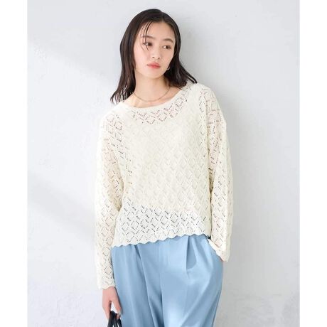透かし編みが今年トレンドのクラシカルな雰囲気を漂わせるデザインニットプルオーバー。
