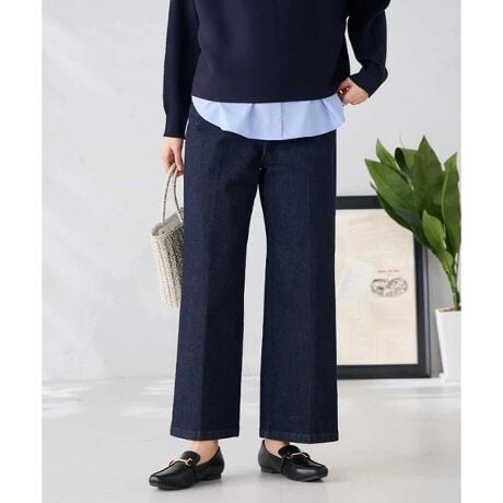 定番人気のデニムワイドパンツは、腰回りがもたつかないすっきりとしたシルエットが人気です。