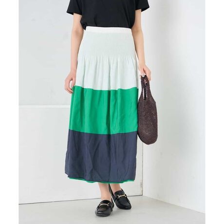 存在感のある配色使いが特徴的なシャーリングスカート。