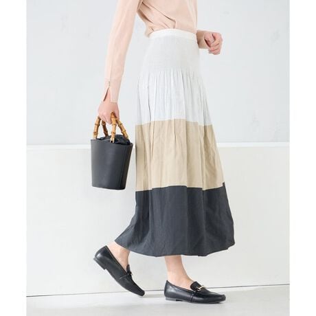 存在感のある配色使いが特徴的なシャーリングスカート。