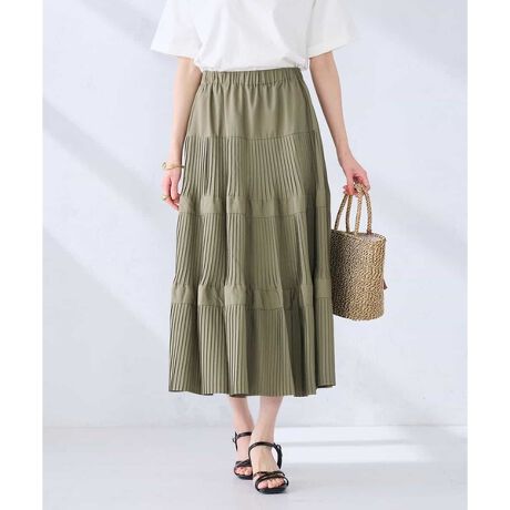 プリーツを切り替えてティアードにしたスカート。