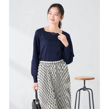 タックデザインでボーダーを表現した着映えニット。