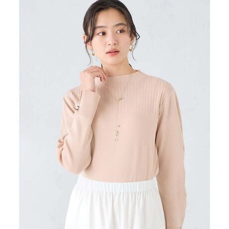 胸上の編続きリブの切替えがベーシックながらデザインポイントになる春ニットです。