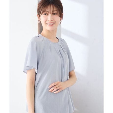 さりげないドビードットのブラウスは、通勤ジャケットのインナーにおすすめです。