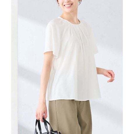 襟周りにきれいなタックが入っており、胸元華やかな印象に◎