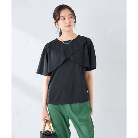 落ち感がありフリルデザインがきれいなさらっと着られる半袖カットソーです。