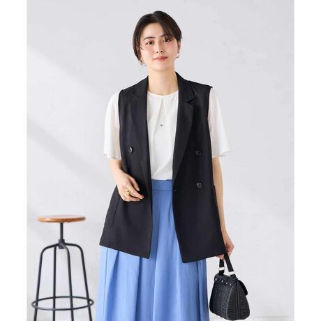 トレンドのカラミ素材のジレが登場。 通気性も良く夏でも着やすい一枚です。