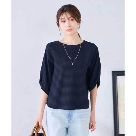 袖口のねじったようなデザインがポイントのカットソートップス。