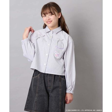 ・ライトグレーのストライプのシャツに大きなリボンがついた女の子らしいデザイン。