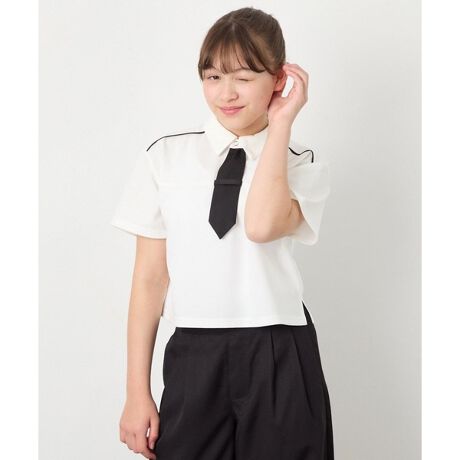 ◆ネクタイ付きが今っぽいショート丈ポロシャツ◆