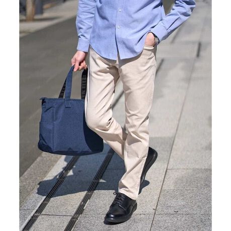 シルエットは細身ながら、横、斜めへの伸縮性があるため、ストレスフリーな履き心地で、スッキリきれい目ながらリラックスして着用できます。