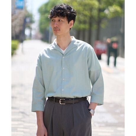 ◆累計15、000枚販売! 「さらリネ」素材シリーズ 清涼感と快適機能を備えた高品質なリネン混スタンドカラー七分袖シャツ◆