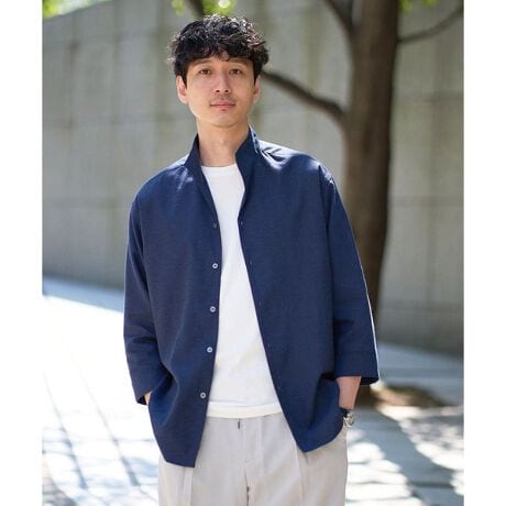 ◆累計15、000枚販売! 「さらリネ」素材シリーズ 清涼感と快適機能を備えた高品質なリネン混スタンドカラー七分袖シャツ◆