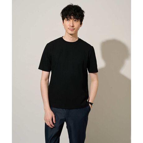 素材感を活かしたクルーネックデザインで、汎用性抜群です。身幅は少しゆとりがあるため、スッキリとキレイに見えながら着用しやすいシルエットです。