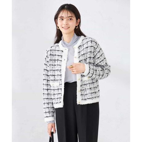・ツイードジャケット感覚で楽しめるきれいめのニットジャケット