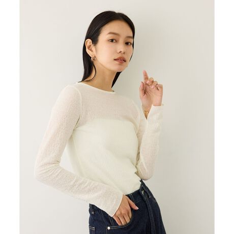 透け感のあるニットのような表情がありつつ、カットソー素材のためご自宅で洗えるのも嬉しいポイント。